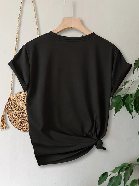 Plus Size, Elegant O-Neck Cotton Letter Graphic Printed T-Shirt