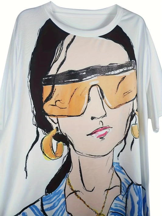 Plus sized Rabbit Graphic Print T-Shirt Top.