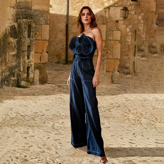 3D Flower Denim Printed Women Dress.