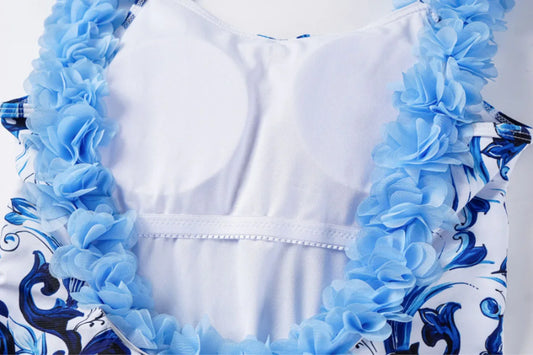 Women's Clothing One Piece Navy Print Bikini Set Beach Skirt Polyester bodysuit Swimwear Style Wear Maxi Dress.