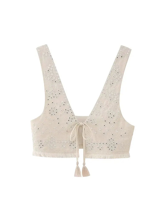 Embroidery Waistcoats Summer Lightweight Neck Sleeveless Tassels.