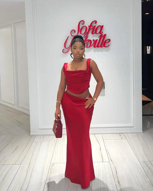 Pink Strapless Corset Tow Piece Set .