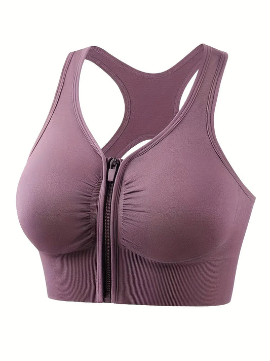 Sports Bra, Women's Plus Zipper Front Cut Out Racer Back Shockproof Fitness Bra