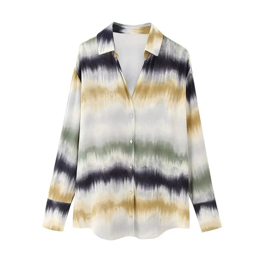 Long-sleeved, Striped Loose Shirt, High Waist Trousers Suit