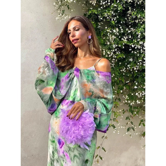 Summer Hippie, Long Sleeves, Backless Tie Dye Sling Dress.