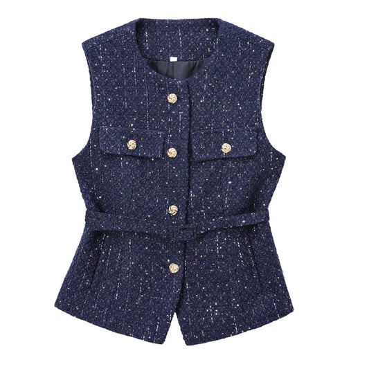 Drop Shoulder Sleeve Vest Women Tops One Button.